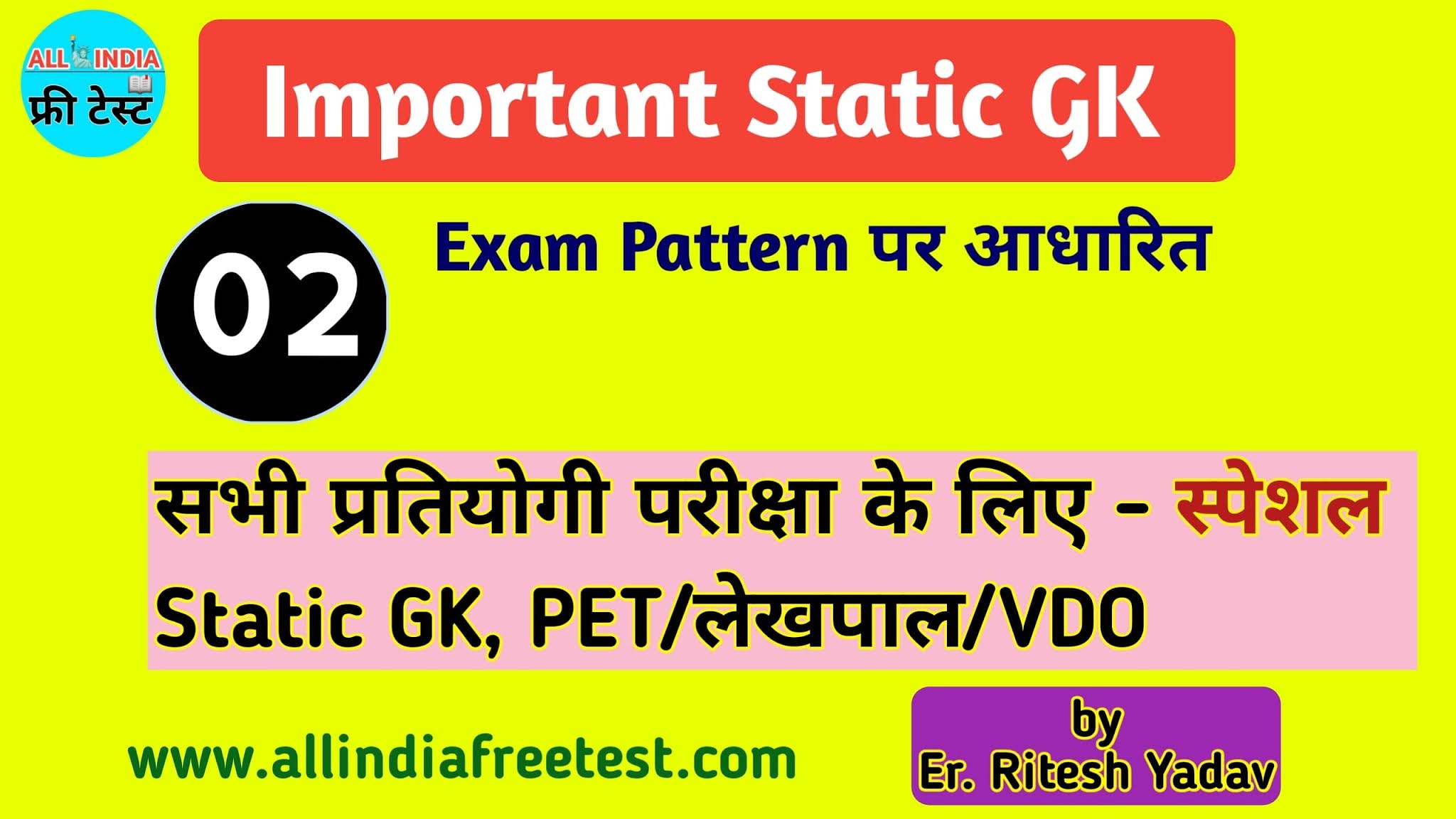 Top50 Static GK Question Answer 02| Important GK Question PDF by Ritesh Yadav